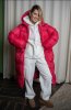 Выкройка пуховика большого объема, прямого силуэта, с горизонтальной стежкой по полочке, спинке, рукавам и капюшону. Пуховик набивной с рассыпчатым утеплителем (лебяжий пух) и ветрозащитным слоем. На полочке изделия карман с втачной листочкой. Рукав длинный покроя реглан. По низу рукава притачная комбинированная манжета.