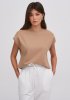 Футболка умеренного объема, прямого силуэта со спущенной линией плеча. Горловина округлой формы. Горловина и проймы обработаны бейкой. Низ изделия обработан на плоскошовной машине.
