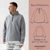 Мужская толстовка среднего объема прямого силуэта, длинный рукав покроя реглан, низ рукава окантован трикотажной окантовочной резинкой, горловина оформлена двойным воротником-стойкой из основного трикотажа, застежка стойки на молнию немного выше уровня линии груди, низ толстовки окантован трикотажной окантовочной резинкой, длина изделия до уровня бедер.